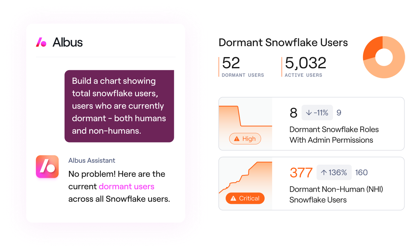 Turn identity data into actions. Get answers to questions in plain English, build the right charts to tell the story, prioritize areas to focus and fix. No more spreadsheets or stale data.
